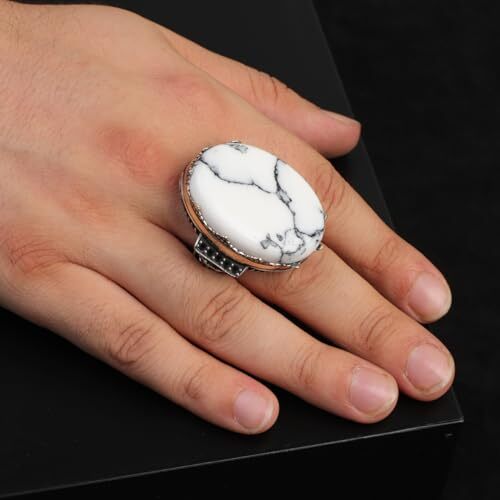 Elevate your style with this exquisite White Turquoise Men's Ring. Crafted from high-quality 925 sterling silver, this vintage-inspired ring features a striking large oval white turquoise stone that makes a bold statement. The ring's polished finish adds a refined touch, making it perfect for both everyday wear and special occasions. Each ring is handmade with meticulous attention to detail, and offers an optional engraving service to add a personal touch. Presented with a Silver Polishing Cloth Gift, this ring combines elegance and practicality, ensuring it remains a timeless piece in your collection.