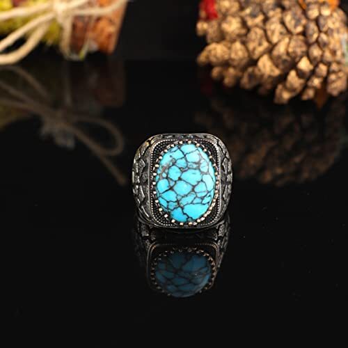 925K Sterling Silver Turquoise Stone Ring, Turquoise Ring,Mens Turquoise Ring,Ottoman Style Ring, Vintage Ring for Men,Gift for Him ★Item Details Gender : Male / Female Material : 925K Sterling Silver Total weight : 16 Grams Gemstone : Turquoise Stone Turquoise Stone Benefits It is known to bring luck and luck to the person. It is effective against the feeling of anxiety. It brings success. It has a protective effect against the evil eye. It balances the tension. It has a protective effect against heart diseases. If it is used as jewelry, its effect increases even more. ✔ Ready to Ship in 1-2 Business Days .. ✔Silver cleaning cloth is our gift next to the product. ✔ Shipped to the Worldwide 1-5 business days with free shipping... ✔ The product will be sent to you with a handmade box to avoid any damage during shipping... ✔ Visit our store, browse other Men's jewelry, silver and gold collections, and find the perfect piece you're looking for...
