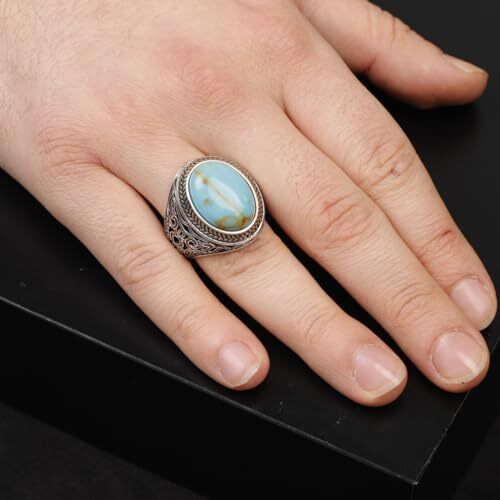 Elevate your style with our Genuine Turquoise Men's Ring, a distinctive gemstone mens ring meticulously crafted in 925 sterling silver. This unique piece is part of our collection of men's turquoise rings, offering a blend of authenticity and craftsmanship. Explore our exclusive range of 925 sterling silver rings for men, highlighting individuality and quality. Handmade with care, this jewelry comes complete with a Silver Polishing Cloth Gift for easy maintenance, ensuring your ring stays radiant and well-maintained effortlessly.
