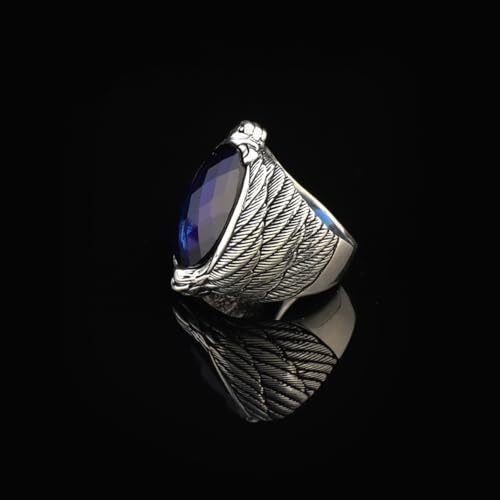 Discover the perfect blend of sophistication and craftsmanship with our Men's Sterling Silver Sapphire Ring adorned with an Eagle design. This handmade ring is a stunning choice for an engagement or as a unique addition to your vintage jewelry collection. The gemstone is thoughtfully set, and the option for custom engraving allows you to make it truly your own. Comes with a Gift Silver Polishing Cloth, ensuring your ring stays brilliant for years to come.
