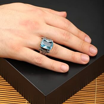 Elevate your personal style with this exquisite 16-gram Man Silver Aquamarine Stone Ring, a meticulously handmade gemstone accessory featuring a vintage design that transcends traditional jewelry. Designed to appeal to both males and females, this unique piece offers a symbol of timeless elegance.