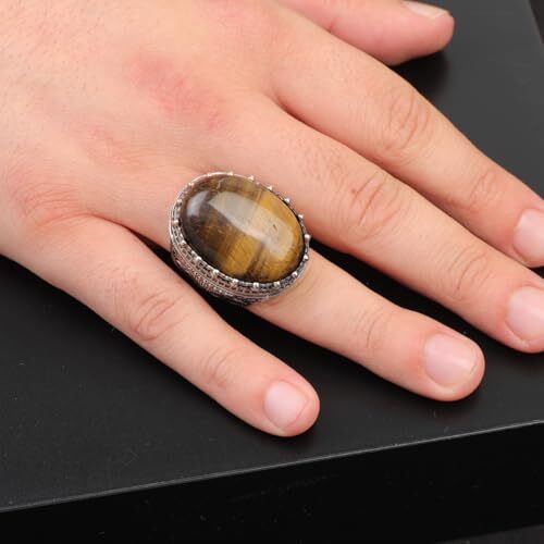 Discover the elegance of our Tiger Eye Ring featuring a stunning micro onyx stone. This chunky silver ring showcases a beautiful gemstone set in high-quality sterling silver, perfect for adding a touch of vintage charm to your collection. Ideal as an engagement ring or a unique gift, this handmade ring for men comes with the option for custom engraving. Plus, each purchase includes a Gift Silver Polishing Cloth to keep your ring shining bright. Embrace the Ottoman style with this exquisite piece!